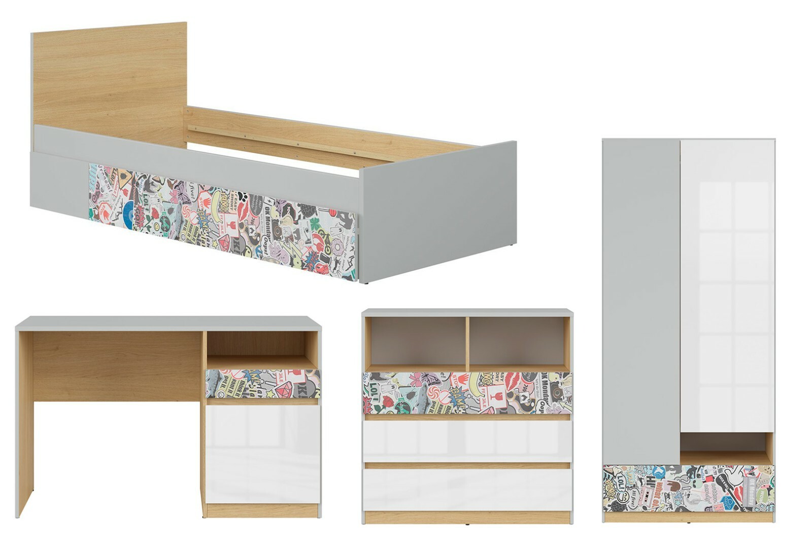 Modern Kids Bedroom Furniture Set Storage Comic Emoji White Gloss